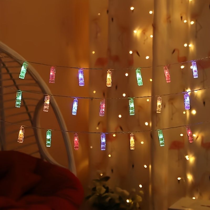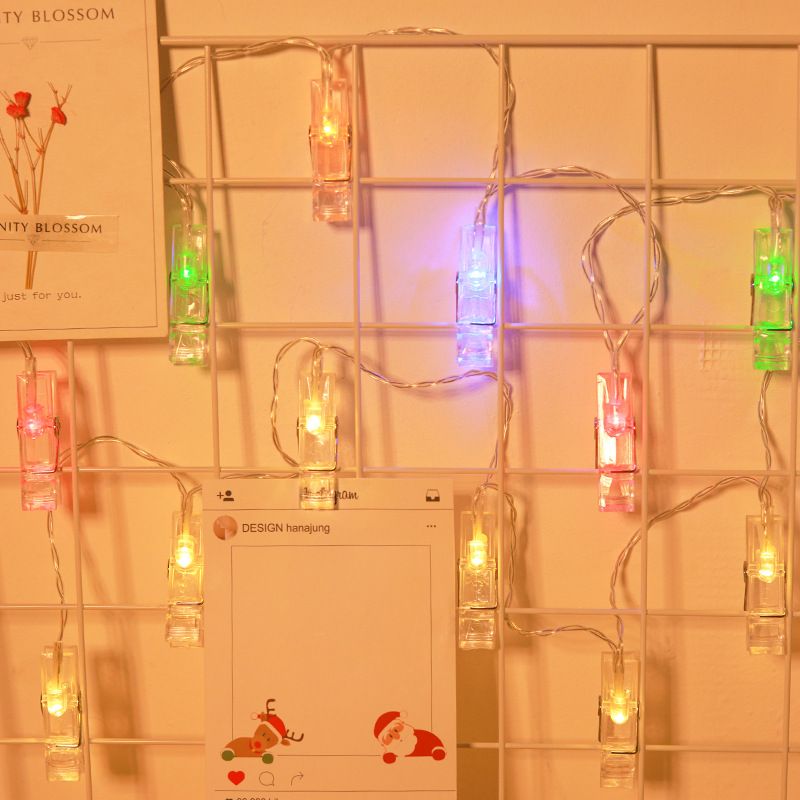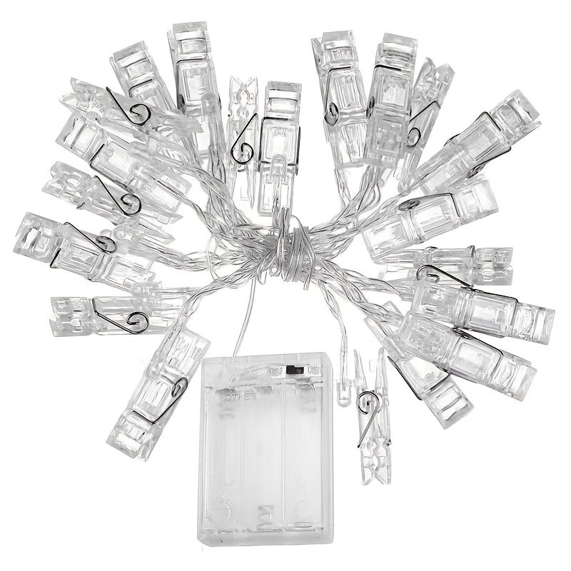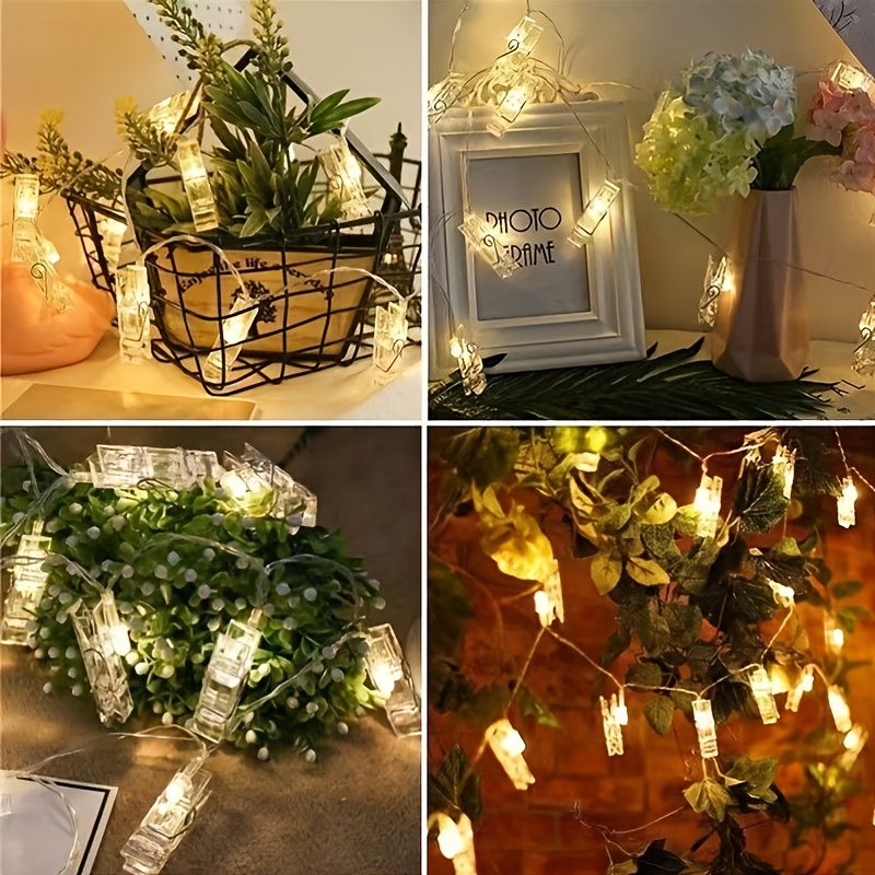 Add a warm and personal glow to any space with photo clip string lights. Featuring 20 LED lights with built-in clips, this battery-powered string light set is perfect for displaying photos, notes, or small decorations. Ideal for both indoor and outdoor use, it creates a cozy atmosphere for weddings, parties, holidays, and everyday home décor.