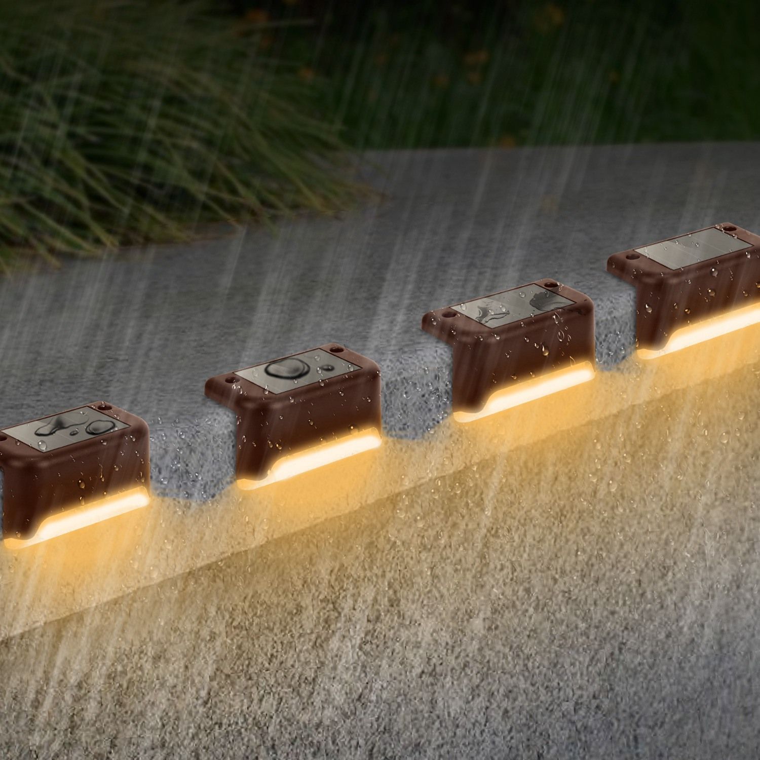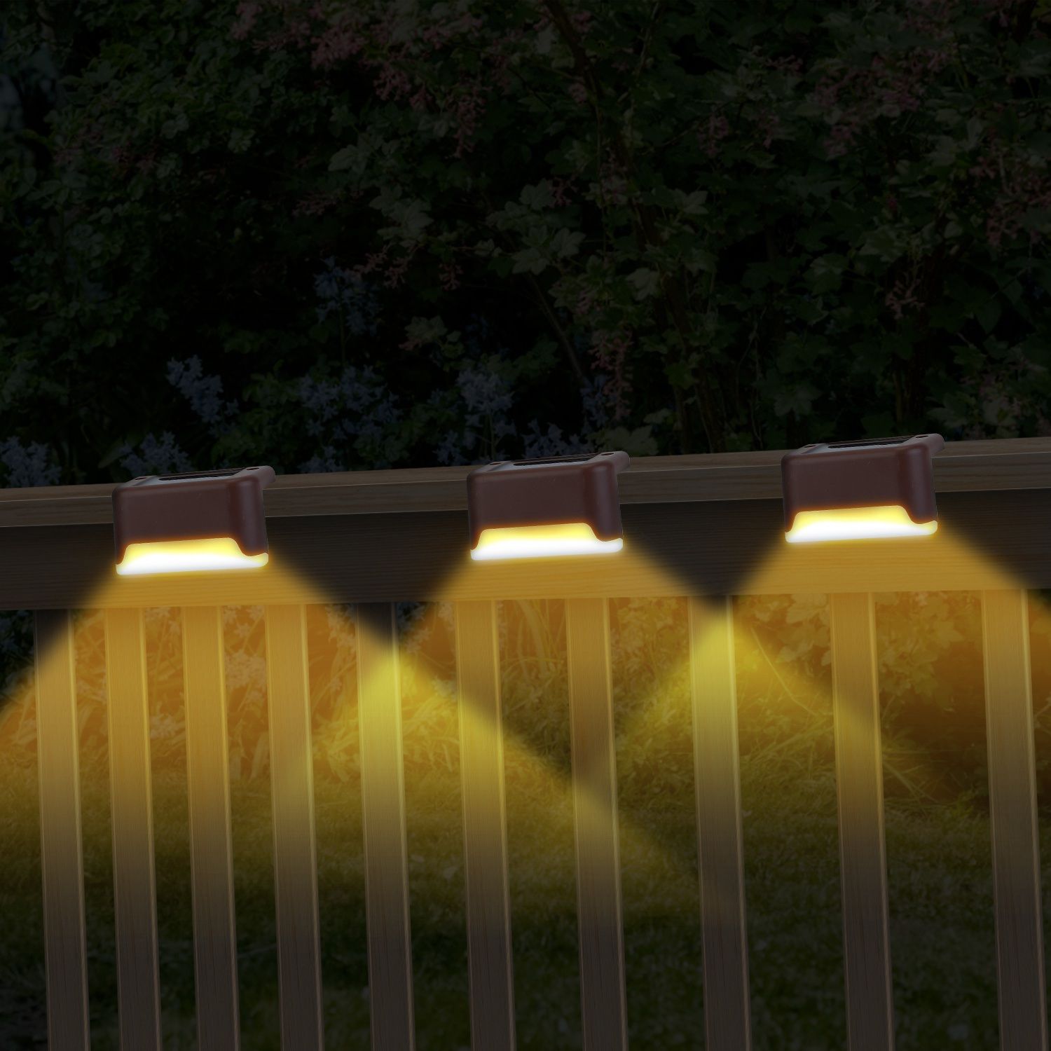 Home > 4-Pack Solar Powered LED Step Lights – Outdoor IP55 Dusk to Dawn Fence Lights